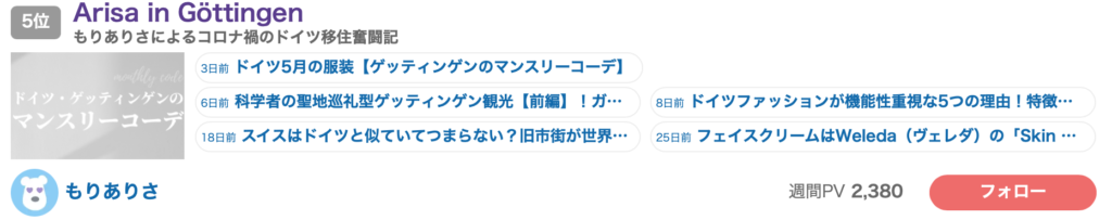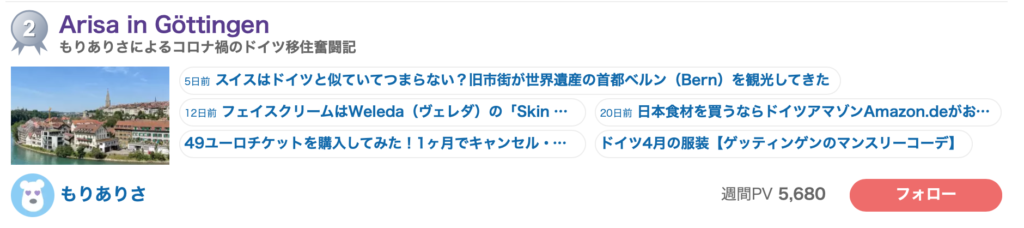 - ブログ村ドイツ情報カテゴリーのPVランキング2位(2023年6月12日)